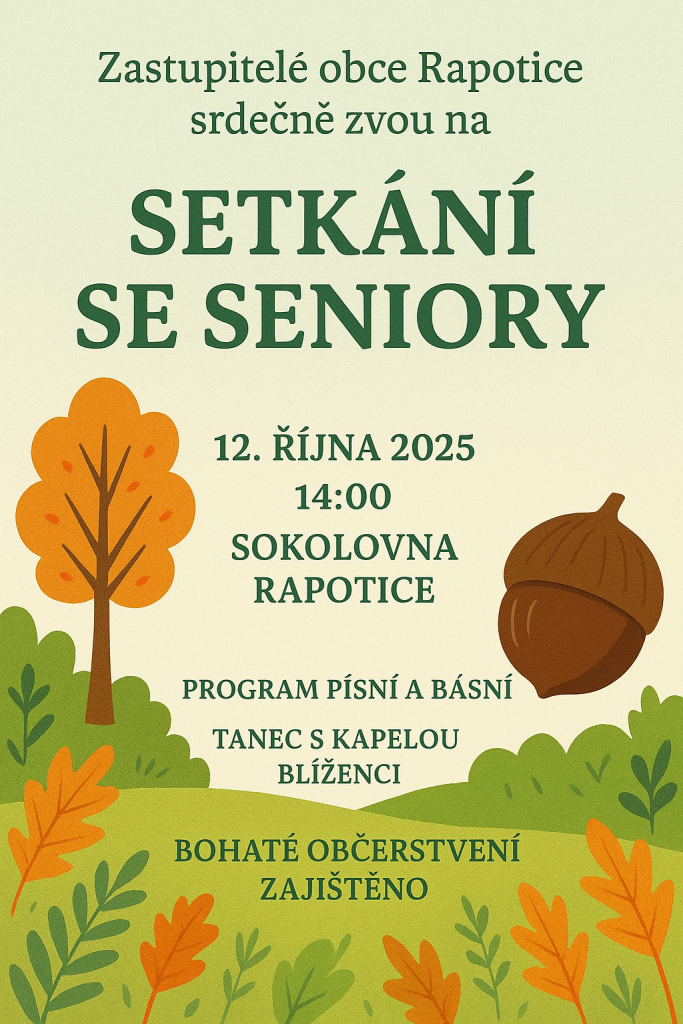 Zastupitelé obce Rapotice srdečně zvou na SETKÁNÍ SE SENIORY