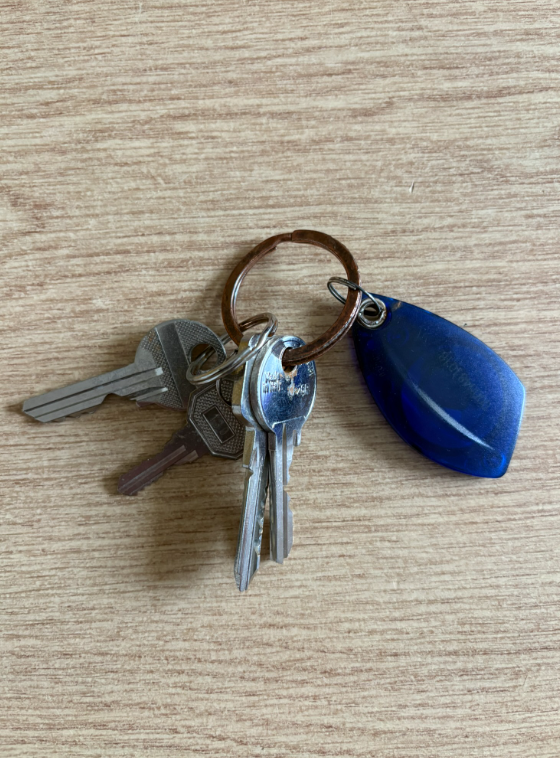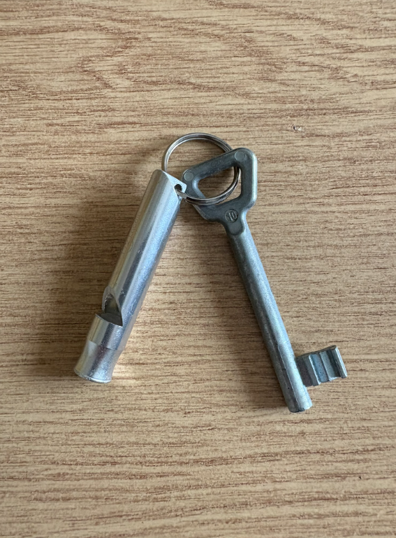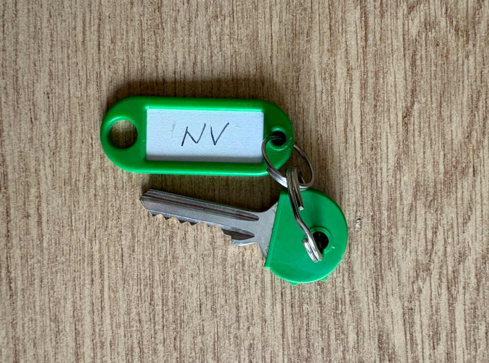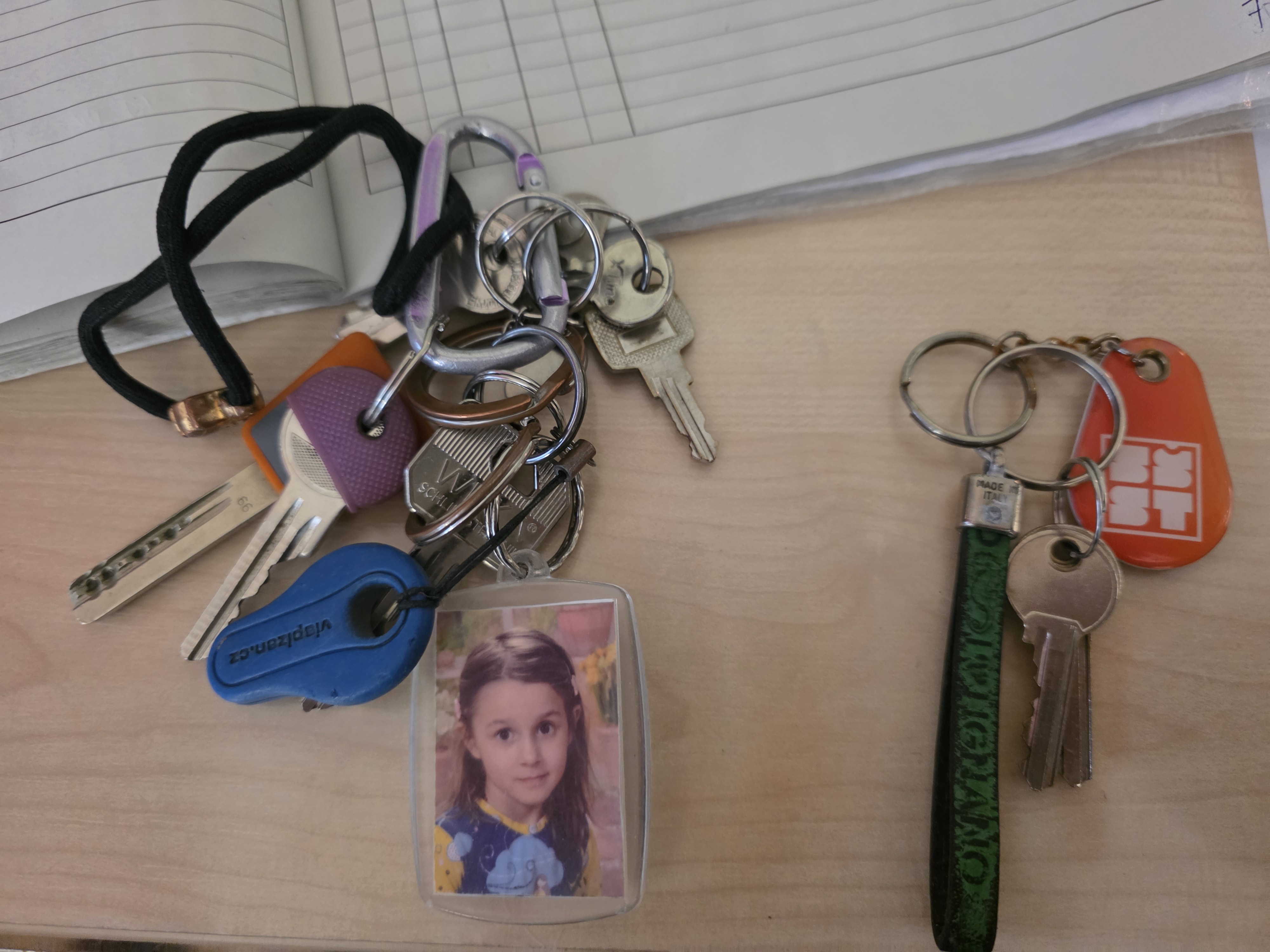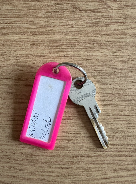 Klíče uložené v dopravní kanceláři výpravčích na železniční stanici Rapotice: