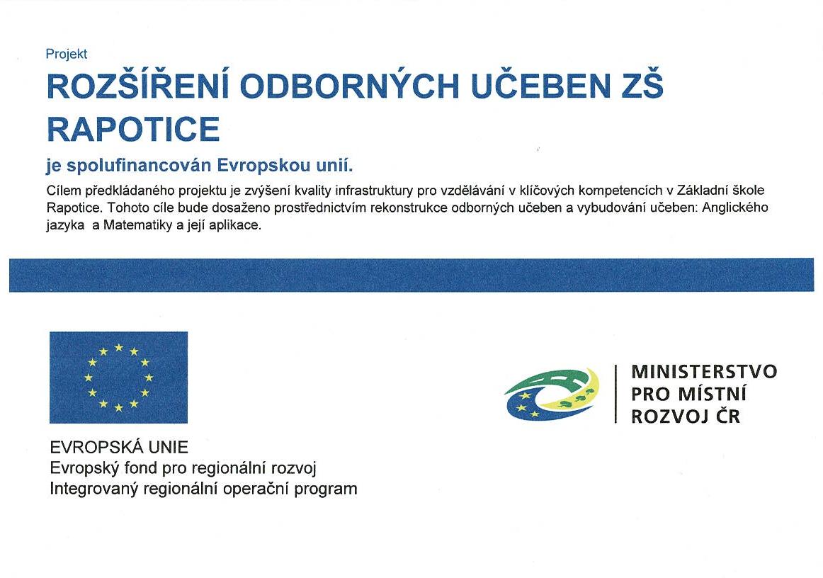 Rozšíření nových učeben ZŠ Rapotice